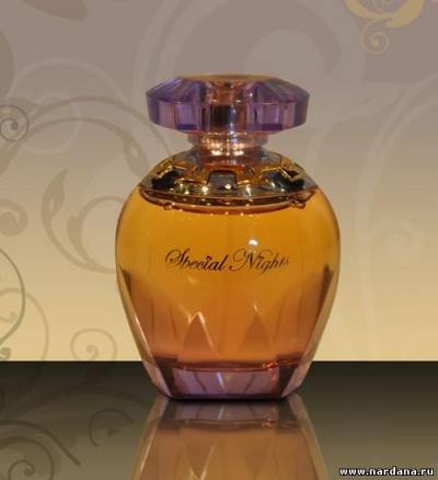 Special Night (Особая Ночь) - великолепный, тонкий аромат красивых цветов, экзотических фруктов с нотами мускуса. Верхние ноты: личи, ночная роза, фрукты, цветок кактуса Средние ноты: лепестки цветка "черный ангел", роза, фиалка Базовые ноты: цветы нисрин, пачули, мускус