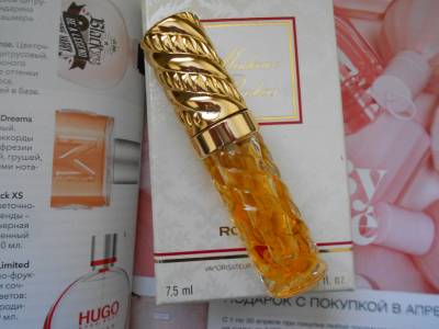 Я вчера весь день была в своём винтаже,приобретённом в парфюмерном любопытстве.Довольна,уже вторые сутки,а от волос до сих пор нежнейший аромат чуть слышен(думаю,на расстоянии уже не слышно)Но аромат вчера был другим совершенно,причём начало так овеяло восточной ноткой:насыщенный,чуть отдаёт сухофруктами и явно слышу томный гиацинт.Одно слово-духи,концентрация старых французских ароматов.Дальше аромат сглаживается,становится цельным цветочным букетом,который не хочется разбирать на составляющие.К базе чуть слышны амброво-пудровые ноты,остаются цветы.